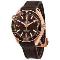 18kt sedna gold case with a brown leather strap. Uni-directional rotating 18kt sedna gold bezel with an inlaid brown ceramic ring. Brown dial with luminous rose gold-tone arrow-shaped hands and index hour markers. Arabic numerals appear at the 6, 9 and 12 o'clock positions. Minute markers around the outer rim. Dial Type: Analog. Luminescent hands and markers. Date display at the 3 o'clock position. Omega calibre 8801 automatic movement, based upon Omega 8800, containing 35 Jewels, bitting at 25200 vph, and has a power reserve of approximately 55 hours. Scratch resistant sapphire crystal. Screw down crown. Transparent case back. Round case shape. Case size: 39.5 mm. Band width: 19 mm. Deployment clasp with a push button release. Water resistant at 600 meters / 2000 feet. Functions: date, hour, minute, second, co-axial escapement, chronometer, magnetic resistant. Seamaster Series. Luxury watch style. Watch label: Swiss Made. Omega Seamaster Automatic 18kt Sedna Gold Men's Watch 215.63.40.20.13.001. GENERAL Box Type: Original Box CASE Case Size: 39 Case Material: 18kt Sedna Gold Case Shape: Round Case Back: Transparent BAND Band Material: Leather Band Type: Strap Band Color: Brown Band Width: 19 mm Clasp: Deployment with Push Button Release DIAL Dial Color: Brown Type: Analog Crystal: Scratch Resistant Sapphire Hands: Luminous Rose Gold-tone Arrow-shaped Dial Markers: Index Second Markers: Arabic Numerals appear at the 6, 9 and 12 o'clock positions. Minute Markers around the outer rim Luminiscence: Hands and Markers Bezel: Uni-directional Rotating Bezel Material: 18kt Sedna Gold with an inlaid Brown Ceramic Ring Crown: Screw Down INFORMATION Brand: Omega Series: Seamaster Collection Name: Seamaster Gender: Mens Model: 215.63.40.20.13.001 Watch Label: Swiss Made Movement: Automatic Engine: Omega Calibre 8801 Power Reserve: 55 hours FEATURES Water Resistance: 600 meters / 2000 feet Calendar: Date display at the 3 o'clock position Functions: Date, Hour, Minute, Second, Co-Axial Escapement, Chronometer, Magnetic Resistant Watch Features: Analog, Chronometer, Ceramic, Gold, Leather ADDITIONAL INFO Watch Style: Luxury Warranty: 4 Year Jomashop Warranty UPC Code: 611393851454 Jomashop Sku: OM21563402013001 Department: Watches Category: Watches