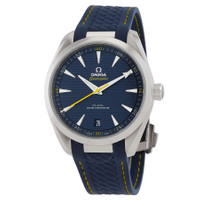 Silver-tone stainless steel case with a blue rubber strap. Fixed silver-tone stainless steel bezel. Blue dial with silver-tone hands and index hour markers. Minute markers around the outer rim. Dial Type: Analog. Luminescent hands and markers. Date display at the 6 o'clock position. Omega Calibre 8900 Automatic movement, based upon Omega 8500, containing 39 Jewels, bitting at 25200 vph, and has a power reserve of approximately 60 hours. Scratch resistant sapphire crystal. Transparent see through case back. Round case shape, case size: 41 mm. Fold over clasp with a safety release. Water resistant at 150 meters / 500 feet. Functions: date, hour, minute, second, co-axial escapement, chronometer. Seamaster Series. Luxury watch style. Watch label: Swiss Made. Omega Seamaster Automatic Chronometer Blue Dial Men's Watch 220.12.41.21.03.009. CASE Case Size: 41 Case Material: Stainless Steel Case Shape: Round Case Back: Transparent See Through BAND Band Material: Rubber Band Type: Strap Band Color: Blue Clasp: Fold Over with Safety Release DIAL Dial Color: Blue Type: Analog Crystal: Scratch Resistant Sapphire Hands: Silver-tone Dial Markers: Index Second Markers: Minute Markers around the outer rim Luminiscence: Hands and Markers Bezel: Fixed Bezel Color: Silver-tone Bezel Material: Stainless Steel INFORMATION Brand: Omega Series: Seamaster Collection Name: Seamaster Gender: Mens Model: 220.12.41.21.03.009 Watch Label: Swiss Made Movement: Automatic Engine: Omega Calibre 8900 Power Reserve: 60 hours FEATURES Water Resistance: 150 meters / 500 feet Calendar: Date display at the 6 o'clock position Functions: Date, Hour, Minute, Second, Co-Axial Escapement, Chronometer Watch Features: Analog, Chronometer, Rubber, Stainless Steel ADDITIONAL INFO Watch Style: Luxury Warranty: 4 Year Jomashop Warranty Jomashop Sku: OM22012412103009 Department: Watches