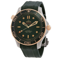 Grey titanium case with a green rubber strap. Uni-directional rotating green 18kt rose gold bezel. Brown dial with rose gold-tone hands and index hour markers. Minute markers around the outer rim. Dial Type: Analog. Luminescent hands and markers. Omega Calibre 8806 Automatic movement, containing 35 Jewels, bitting at 25200 vph, and has a power reserve of approximately 55 hours. Scratch resistant sapphire crystal. Screw down crown. Transparent see through case back. Round case shape, case size: 42 mm. Fold over clasp with a safety release. Water resistant at 300 meters / 1000 feet. Functions: hour, minute, second, co-axial escapement, chronometer, magnetic resistant. Seamaster Series. Dive watch style. Watch label: Swiss Made. Omega Seamaster Automatic Chronometer Brown Dial Men's Watch 210.92.42.20.10.001. GENERAL Box Type: Original Box CASE Case Size: 42 Case Material: Titanium Case Shape: Round Case Back: Transparent See Through BAND Band Material: Rubber Band Type: Strap Band Color: Green Clasp: Fold Over with Safety Release DIAL Dial Color: Brown Type: Analog Crystal: Scratch Resistant Sapphire Hands: Rose Gold-tone Dial Markers: Index Second Markers: Minute Markers around the outer rim Luminiscence: Hands and Markers Bezel: Uni-directional Rotating Bezel Color: Green Bezel Material: 18kt Rose Gold Crown: Screw Down INFORMATION Brand: Omega Series: Seamaster Collection Name: Seamaster Gender: Mens Model: 210.92.42.20.10.001 Watch Label: Swiss Made Movement: Automatic Engine: Omega Calibre 8806 Power Reserve: 55 hours FEATURES Water Resistance: 300 meters / 1000 feet Functions: Hour, Minute, Second, Co-Axial Escapement, Chronometer, Magnetic Resistant Watch Features: Analog, Chronometer, Gold, Rubber, Titanium ADDITIONAL INFO Watch Style: Dive Warranty: 4 Year Jomashop Warranty Jomashop Sku: OM21092422010001 Department: Watches