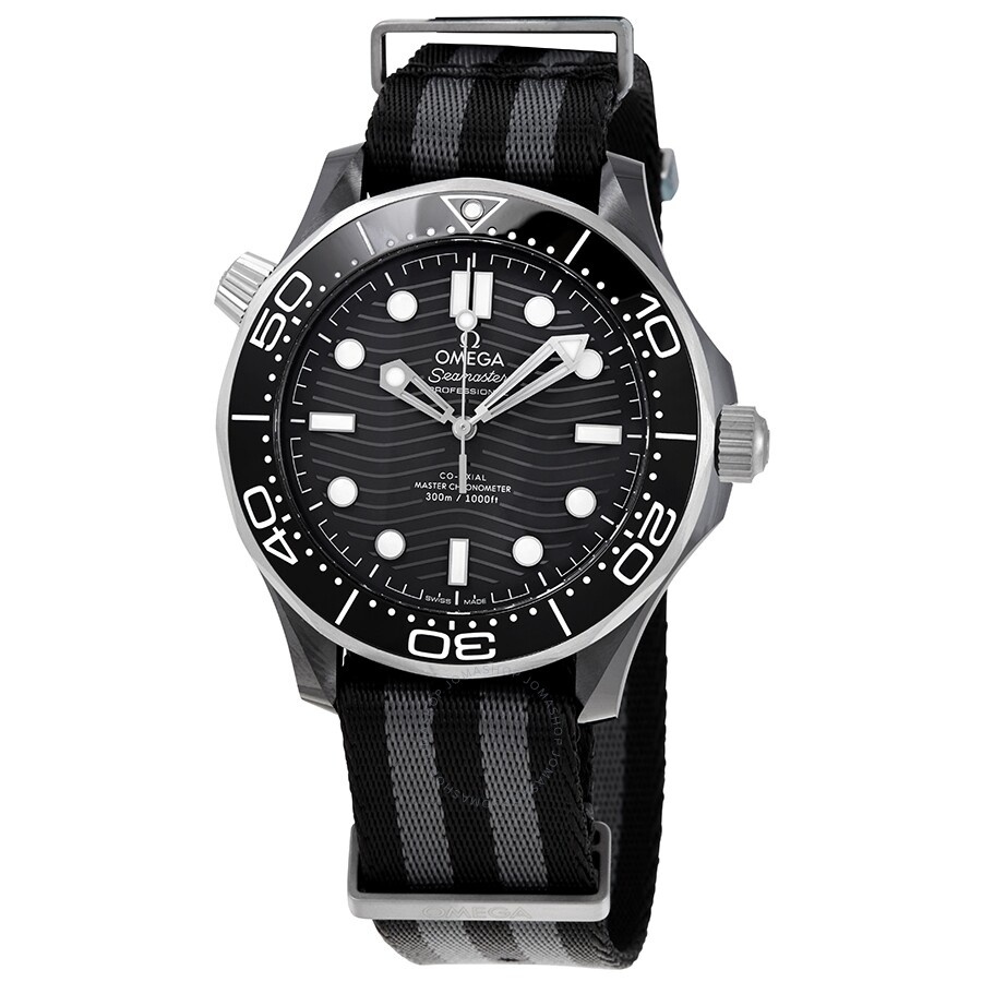 Black ceramic case with a black and grey canvas strap. Uni-directional rotating titanium bezel with a black ceramic ring. Black dial with luminous silver-tone hands and dot hour markers. Minute markers around the outer rim. Dial Type: Analog. Luminescent hands and markers. Omega calibre 8806 automatic movement with a 55-hour power reserve. Scratch resistant sapphire crystal. Screw down crown. Transparent case back. Round case shape. Case size: 43.5 mm. Band width: 21 mm. Tang clasp. Water resistant at 300 meters / 1000 feet. Functions: hour, minute, second, co-axial escapement, chronometer, magnetic resistant. Dive watch style. Watch label: Swiss Made. Omega Seamaster Automatic Chronometer Men's Watch 210.92.44.20.01.002. GENERAL Box Type: Original Box CASE Case Size: 43 Case Material: Ceramic Case Shape: Round Case Back: Transparent BAND Band Material: Canvas Band Type: Strap Band Color: Black and Grey Band Width: 21 mm Clasp: Tang DIAL Dial Color: Black Type: Analog Crystal: Scratch Resistant Sapphire Hands: Luminous Silver-tone Dial Markers: Dot Second Markers: Minute Markers around the outer rim Luminiscence: Hands and Markers Bezel: Uni-directional Rotating Bezel Color: Grey Bezel Material: Titanium with a Black Ceramic Ring Crown: Screw Down INFORMATION Brand: Omega Series: Seamaster Collection Name: Seamaster Gender: Mens Model: 210.92.44.20.01.002 Watch Label: Swiss Made Movement: Automatic Engine: Omega Calibre 8806 Power Reserve: 55 hours FEATURES Water Resistance: 300 meters / 1000 feet Functions: Hour, Minute, Second, Co-Axial Escapement, Chronometer, Magnetic Resistant Watch Features: Analog, Chronometer, Ceramic, Titanium ADDITIONAL INFO Watch Style: Dive Warranty: 4 Year Jomashop Warranty UPC Code: 7612586299230 Jomashop Sku: OM21092442001002 Department: Watches Category: Watches