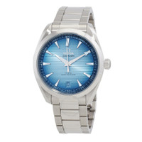Silver-tone stainless steel case and bracelet. Fixed silver-tone stainless steel bezel. Blue dial with silver-tone hands and index hour markers. Minute markers around the outer rim. Dial Type: Analog. Luminescent hands and markers. Date display at the 6 o'clock position. Omega Calibre 8900 Automatic movement, based upon Omega 8500, containing 39 Jewels, bitting at 25200 vph, and has a power reserve of approximately 60 hours. Scratch resistant sapphire crystal. Screw down crown. Solid case back. Round case shape, case size: 41 mm. Fold over clasp with a safety release. Water resistant at 150 meters / 500 feet. Functions: date, hour, minute, second, co-axial escapement, chronometer. Additional Info: original box, international warranty card, manual (complete accessories). Seamaster Series. Luxury watch style. Watch label: Swiss Made. Omega Seamaster Automatic Chronometer Blue Dial Men's Watch 220.10.41.21.03.005. INFORMATION Brand: Omega Series: Seamaster Collection Name: Seamaster Gender: Mens Model: 220.10.41.21.03.005 Watch Label: Swiss Made Movement: Automatic Engine: Omega Calibre 8900 Power Reserve: 60 hours CASE Case Size: 41 mm Case Material: Stainless Steel Case Shape: Round Case Back: Solid BAND Band Material: Stainless Steel Band Type: Bracelet Band Color: Silver-tone Clasp: Fold Over with Safety Release DIAL Dial Color: Blue Type: Analog Crystal: Scratch Resistant Sapphire Hands: Silver-tone Dial Markers: Index Second Markers: Minute Markers around the outer rim Luminiscence: Hands and Markers Bezel: Fixed Bezel Color: Silver-tone Bezel Material: Stainless Steel Crown: Screw Down FEATURES Water Resistance: 150 meters / 500 feet Calendar: Date display at the 6 o'clock position Functions: Date, Hour, Minute, Second, Co-Axial Escapement, Chronometer Watch Features: Stainless Steel, Chronometer, Analog ADDITIONAL INFO Watch Style: Luxury Warranty: 4 Year Jomashop Warranty Additional Info: Original Box, International Warranty Card, Manual (Complete Accessories) Jomashop Sku: OM22010412103005 Department: Watches Category: Watches