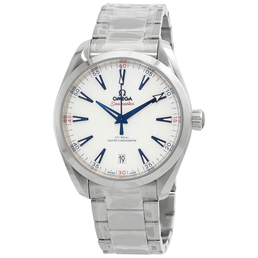 Silver-tone stainless steel case and bracelet. Fixed silver-tone stainless steel bezel. White dial with blue hands and index hour markers. Minute markers around the outer rim. Dial Type: Analog. Luminescent hands and markers. Date display at the 6 o'clock position. Omega Calibre 8900 Automatic movement, based upon Omega 8500, containing 39 Jewels, bitting at 25200 vph, and has a power reserve of approximately 60 hours. Scratch resistant sapphire crystal. Screw down crown. Solid case back. Round case shape, case size: 41 mm. Deployment with push button release clasp. Water resistant at 150 meters / 500 feet. Functions: date, hour, minute, second, co-axial escapement, chronometer. Additional Info: original box, international warranty card, manual (complete accessories). Seamaster Series. Luxury watch style. Watch label: Swiss Made. Omega Seamaster Automatic Chronometer White Dial Men's Watch 522.10.41.21.04.001. INFORMATION Brand: Omega Series: Seamaster Collection Name: Seamaster Gender: Mens Model: 522.10.41.21.04.001 Watch Label: Swiss Made Movement: Automatic Engine: Omega Calibre 8900 Power Reserve: 60 hours CASE Case Size: 41 mm Case Material: Stainless Steel Case Shape: Round Case Back: Solid BAND Band Material: Stainless Steel Band Type: Bracelet Band Color: Silver-tone Clasp: Deployment with Push Button Release DIAL Dial Color: White Type: Analog Crystal: Scratch Resistant Sapphire Hands: Blue Dial Markers: Index Second Markers: Minute Markers around the outer rim Luminiscence: Hands and Markers Bezel: Fixed Bezel Color: Silver-tone Bezel Material: Stainless Steel Crown: Screw Down FEATURES Water Resistance: 150 meters / 500 feet Calendar: Date display at the 6 o'clock position Functions: Date, Hour, Minute, Second, Co-Axial Escapement, Chronometer Watch Features: Stainless Steel, Chronometer, Analog ADDITIONAL INFO Watch Style: Luxury Warranty: 2 Year Jomashop Warranty Additional Info: Original Box, International Warranty Card, Manual (Complete Accessories) Jomashop Sku: OM52210412104001 Department: Watches Category: Watches