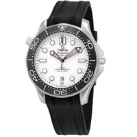 Silver-tone stainless steel case with a black rubber strap. Uni-directional rotating (count-up elapsed time) silver-tone stainless steel with a black ceramic ring bezel. White dial with luminous black skeleton hands and dot hour markers. Minute markers around the outer rim. Dial Type: Analog. Luminescent hands and markers. Date display at the 6 o'clock position. Omega Calibre 8800 Automatic movement, containing 35 Jewels, bitting at 25200 vph, and has a power reserve of approximately 55 hours. Scratch resistant sapphire crystal. Screw down crown. Transparent case back. Round case shape, case size: 42 mm. Band width: 20 mm. Tang clasp. Water resistant at 300 meters / 1000 feet. Functions: date, hour, minute, second, co-axial escapement, chronometer, magnetic resistant. Seamaster Series. Dive watch style. Watch label: Swiss Made. Omega Seamaster Automatic White Dial Men's Watch 210.32.42.20.04.001. INFORMATION Brand: Omega Series: Seamaster Collection Name: Seamaster Gender: Mens Model: 210.32.42.20.04.001 Watch Label: Swiss Made Movement: Automatic Engine: Omega Calibre 8800 Power Reserve: 55 hours CASE Case Size: 42 mm Case Material: Stainless Steel Case Shape: Round Case Back: Transparent BAND Band Material: Rubber Band Type: Strap Band Color: Black Band Width: 20 mm Clasp: Tang DIAL Dial Color: White Type: Analog Crystal: Scratch Resistant Sapphire Hands: Luminous Black Skeleton Dial Markers: Dot Second Markers: Minute Markers around the outer rim Luminiscence: Hands and Markers Bezel: Uni-directional Rotating (Count-Up Elapsed Time) Bezel Color: Silver-tone Bezel Material: Stainless Steel with a Black Ceramic Ring Crown: Screw Down FEATURES Water Resistance: 300 meters / 1000 feet Calendar: Date display at the 6 o'clock position Functions: Date, Hour, Minute, Second, Co-Axial Escapement, Chronometer, Magnetic Resistant Watch Features: Stainless Steel, Rubber, Ceramic, Chronometer, Analog ADDITIONAL INFO Watch Style: Dive Warranty: 4 Year Jomashop Warranty UPC Code: 7612586297977 Jomashop Sku: OM21032422004001 Department: Watches Category: Watches
