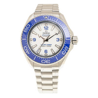 Silver-tone stainless steel case and bracelet. Uni-directional rotating blue ceramic bezel. White dial with 18kt white gold hands and index-Arabic numeral hour markers. Arabic numeral markers at the 3, 6, 9 and 12 o'clock positions. Minute markers around the outer rim. Dial Type: Analog. Luminescent hands and markers. Omega Calibre 8912 Automatic movement, containing 39 Jewels, bitting at 25200 vph, and has a power reserve of approximately 60 hours. Scratch resistant sapphire crystal. Screw down crown. Transparent case back. Round case shape, case size: 45.5 mm. Band width: 22 mm. Water resistant at 600 meters / 2000 feet. Functions: hour, minute, second, co-axial escapement, chronometer. Seamaster Planet Ocean Series. Dive watch style. Watch label: Swiss Made. Omega Seamaster Planet Ocean Automatic Chronometer White Dial Men's Watch 215.30.46.21.04.001. INFORMATION Brand: Omega Series: Seamaster Planet Ocean Collection Name: Seamaster Planet Ocean Gender: Mens Model: 215.30.46.21.04.001 Watch Label: Swiss Made Movement: Automatic Engine: Omega Calibre 8912 Power Reserve: 60 hours CASE Case Size: 45.5 mm Case Material: Stainless Steel Case Shape: Round Case Back: Transparent BAND Band Material: Stainless Steel Band Type: Bracelet Band Color: Silver-tone Band Width: 22 mm DIAL Dial Color: White Type: Analog Crystal: Scratch Resistant Sapphire Hands: 18kt White Gold Dial Markers: Index-Arabic Numeral Second Markers: Arabic Numeral Markers at the 3, 6, 9 and 12 o'clock positions. Minute Markers around the outer rim Luminiscence: Hands and Markers Bezel: Uni-directional Rotating Bezel Color: Blue Bezel Material: Ceramic Crown: Screw Down FEATURES Water Resistance: 600 meters / 2000 feet Functions: Hour, Minute, Second, Co-Axial Escapement, Chronometer Watch Features: Stainless Steel, Gold, Ceramic, Chronometer, Analog ADDITIONAL INFO Watch Style: Dive Warranty: 2 Year Jomashop Warranty Jomashop Sku: OM21530462104001 Department: Watches Category: Watches