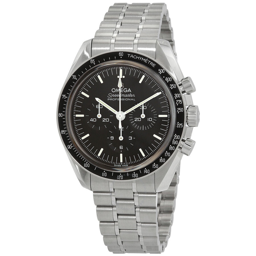Stainless steel case with a stainless steel bracelet. Fixed stainless steel bezel with an inlaid black aluminium ring showing tachymeter markings. Black dial with luminous silver-tone hands and index hour markers. Minute markers around the outer rim. Dial Type: Analog. Luminescent hands and markers. Omega calibre 3861 hand wind movement. Scratch resistant sapphire crystal. Screw down crown. Transparent case back. Round case shape. Case size: 42 mm. Case thickness: 13.18 mm. Band width: 20 mm. Foild over with push button release clasp. Water resistant at 50 meters / 165 feet. Functions: chronograph, tachymeter, hour, minute, second. Additional Info: original box, manual (complete accessories). Speedmaster Series. Luxury watch style. Watch label: Swiss Made. Omega Speedmaster Chronograph Hand Wind Black Dial Men's Watch 310.30.42.50.01.002. INFORMATION Brand: Omega Series: Speedmaster Collection Name: Speedmaster Gender: Mens Model: 310.30.42.50.01.002 Watch Label: Swiss Made Movement: Hand Wind Engine: Omega Calibre 3861 CASE Case Size: 42 mm Case Thickness: 13.18 mm Case Material: Stainless Steel Case Shape: Round Case Back: Transparent BAND Band Material: Stainless Steel Band Type: Bracelet Band Color: Silver-tone Band Width: 20 mm Clasp: Foild Over with Push Button Release DIAL Dial Color: Black Type: Analog Crystal: Scratch Resistant Sapphire Hands: Luminous Silver-tone Dial Markers: Index Second Markers: Minute Markers around the outer rim Luminiscence: Hands and Markers Bezel: Fixed Bezel Color: Silver-tone Bezel Material: Stainless Steel with an inlaid Black Aluminium Ring showing Tachymeter Markings Crown: Screw Down FEATURES Water Resistance: 50 meters / 165 feet Functions: Chronograph, Tachymeter, Hour, Minute, Second Watch Features: Chronograph, Stainless Steel, Analog ADDITIONAL INFO Watch Style: Luxury Warranty: 2 Year Jomashop Warranty Additional Info: Original Box, Manual (Complete Accessories) Jomashop Sku: OM31030425001002 Department: Watches Category: Watches