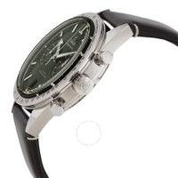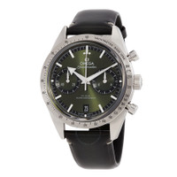Silver-tone stainless steel case with a green leather strap. Fixed tachymeter scale silver-tone stainless steel bezel. Green dial with silver-tone hands and index hour markers. Minute markers around the outer rim. Dial Type: Analog. Luminescent hands and markers. Date display at the 6 o'clock position. Chronograph - two sub-dials displaying: 60 second and 12 hour/60 min. Omega Calibre 9906 Hand Wind movement, containing 44 Jewels, bitting at 28800 vph, and has a power reserve of approximately 60 hours. Scratch resistant sapphire crystal. Transparent see through case back. Round case shape, case size: 40 mm. Buckle clasp. Water resistant at 50 meters / 165 feet. Functions: chronograph, column wheel, date, hour, minute, small second, co-axial escapement, magnetic resistant. Additional Info: original box, international warranty card, manual (complete accessories). Speedmaster Series. Luxury watch style. Watch label: Swiss Made. Omega Speedmaster Chronograph Hand Wind Green Dial Men's Watc INFORMATION Brand: Omega Series: Speedmaster Collection Name: Speedmaster Gender: Mens Model: 332.12.41.51.10.001 Watch Label: Swiss Made Movement: Hand Wind Engine: Omega Calibre 9906 Power Reserve: 60 hours CASE Case Size: 40 mm Case Material: Stainless Steel Case Shape: Round Case Back: Transparent See Through BAND Band Material: Leather Band Type: Strap Band Color: Green Clasp: Buckle DIAL Dial Color: Green Type: Analog Crystal: Scratch Resistant Sapphire Hands: Silver-tone Dial Markers: Index Second Markers: Minute Markers around the outer rim Sub Dials: Two - 60 Second and 12 hour/60 min Luminiscence: Hands and Markers Bezel: Fixed Tachymeter Scale Bezel Color: Silver-tone Bezel Material: Stainless Steel FEATURES Water Resistance: 50 meters / 165 feet Calendar: Date display at the 6 o'clock position Functions: Chronograph, Column Wheel, Date, Hour, Minute, Small Second, Co-Axial Escapement, Magnetic Resistant Watch Features: Chronograph, Stainless Steel, Leather, Analog ADDITIONAL INFO Watch Style: Luxury Warranty: 2 Year Jomashop Warranty Additional Info: Original Box, International Warranty Card, Manual (Complete Accessories) Jomashop Sku: OM33212415110001 Department: Watches Category: Watches