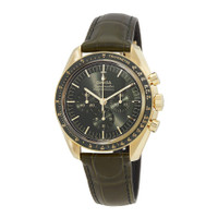 18kt moonshine gold case with a green leather strap. Green ceramic bezel. Green dial with 18kt moonshine gold hands and index hour markers. Minute markers around the outer rim. Dial Type: Analog. Luminescent hands and markers. Chronograph - three sub-dials displaying: 60 second, 30 minute and12 hour. Omega Calibre 3861 Automatic movement, based upon Lemania 1873, containing 26 Jewels, bitting at 21600 vph, and has a power reserve of approximately 50 hours. Scratch resistant sapphire crystal. Pull / push crown. Transparent case back. Round case shape, case size: 42 mm. Band width: 20 mm. Foldover clasp. Water resistant at 50 meters / 165 feet. Functions: chronograph, hour, minute, small second, chronometer. Speedmaster Series. Luxury watch style. Watch label: Swiss Made. Omega Speedmaster Chronograph Automatic Chronometer Green Dial Men's Watch 310.63.42.50.10.001. GENERAL Box Type: Original Box CASE Case Size: 42 Case Material: 18kt Moonshine Gold Case Shape: Round Case Back: Transparent BAND Band Material: Leather Band Type: Strap Band Color: Green Band Width: 20 mm Clasp: Foldover DIAL Dial Color: Green Type: Analog Crystal: Scratch Resistant Sapphire Hands: 18kt Moonshine Gold Dial Markers: Index Second Markers: Minute Markers around the outer rim Sub Dials: Three - 60 Second, 30 Minute and12 Hour Luminiscence: Hands and Markers Bezel: Fixed Tachymeter Scale Bezel Color: Green Bezel Material: Ceramic Crown: Pull / Push INFORMATION Brand: Omega Series: Speedmaster Collection Name: Speedmaster Gender: Mens Model: 310.63.42.50.10.001 Watch Label: Swiss Made Movement: Automatic Engine: Omega Calibre 3861 Power Reserve: 50 hours FEATURES Water Resistance: 50 meters / 165 feet Functions: Chronograph, Hour, Minute, Small Second, Chronometer Watch Features: Analog, Chronometer, Ceramic, Gold, Leather, Chronograph ADDITIONAL INFO Watch Style: Luxury Warranty: 2 Year Jomashop Warranty Jomashop Sku: OM31063425010001 Department: Watches Category: Watches