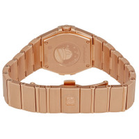 Pre-owned 18kt rose gold case with a 18kt rose gold bracelet. Fixed 18kt rose gold bezel set with diamonds. Mother of pearl dial with rose gold-tone hands and diamond hour markers. Dial Type: Analog. Luminescent hands. Omega Calibre 1376 quartz movement. Scratch resistant sapphire crystal. Pull / push crown. Solid case back. Case size: 27 mm. Round case shape. Band width: 18 mm. Fold over clasp with a push button release. Water resistant at 100 meters / 330 feet. Functions: hour, minute. Luxury watch style. Watch label: Swiss Made. Omega Constellation Mother of Pearl Dial Ladies Watch 123.55.27.60.55.001. GENERAL Collection Name: Constellation INFORMATION Brand: Omega Series: Constellation Model: 123.55.27.60.55.001 Gender: Womens Watch Label: Swiss Made Movement: Quartz Engine: Omega Calibre 1376 CONDITION INFORMATION Box: No Preowned Item Condition: Excellent Papers: No CASE Case Diameter: 27 Case Material: Gold Case Shape: Round Case Back: Solid DIAL Type: Analog Dial Color: Mother of Pearl Crystal: Scratch Resistant Sapphire Hands: Rose Gold-tone Dial Markers: Diamond Luminiscence: Hands Bezel: Fixed Bezel Color: 18kt Rose Bezel Material: Gold set with Diamonds Crown: Pull / Push BAND Band Type: Bracelet Band Material: Gold Band Color: 18kt Rose Band Length: 6.75 inches Band Width: 18 mm Clasp: Fold Over with Push Button Release FEATURES Water Resistance: 100 meters / 330 feet Functions: Hour, Minute Watch Features: Analog, Gold, Diamond ADDITIONAL INFO Watch Style: Luxury Warranty: 1 Year Jomashop Warranty UPC Code: 683498469858 Jomashop Sku: PRE-P-OM97857 Department: Watches
