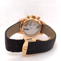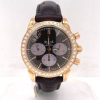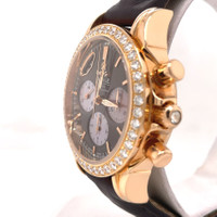 Rose gold-tone 18kt rose gold case with a brown leather strap. Fixed rose gold-tone bezel with diamond set 18kt rose gold. Brown dial with rose gold-tone hands and index hour markers. Minute markers around the outer rim. Dial Type: Analog. Luminescent hands and markers. Date display between 10 and 11 o'clock position. Chronograph - three sub-dials displaying: 60 second, 30 minute and 12 hour. Automatic movement. Scratch resistant sapphire crystal. Pull / push crown. Transparent case back. Round case shape, case size: 35 mm, case thickness: 13 mm. Band width: 16 mm. Deployment with push button release clasp. Water resistant at 100 meters / 330 feet. Functions: chronograph, date, hour, minute, second. De Ville Co-axial Series. Luxury watch style. Watch label: Swiss Made. Pre-owned Omega De Ville Co-Axial Chronograph Automatic Diamond Brown Dial Ladies Watch 4677.60.37. GENERAL Collection Name: De Ville Co-Axial INFORMATION Brand: Omega Series: De Ville Co-Axial Model: 4677.60.37 Gender: Womens Watch Label: Swiss Made Movement: Automatic CONDITION INFORMATION Box: No Preowned Item Condition: Excellent Papers: No CASE Case Size: 35 mm Case Thickness: 13 mm Case Material: 18kt Rose Gold Case Shape: Round Case Back: Transparent DIAL Type: Analog Dial Color: Brown Crystal: Scratch Resistant Sapphire Hands: Rose Gold-tone Second Markers: Minute Markers around the outer rim Dial Markers: Index Sub Dials: Three - 60 Second, 30 Minute and 12 Hour Luminiscence: Hands and Markers Bezel: Fixed Bezel Color: Rose Gold-tone Bezel Material: Diamond Set 18kt Rose Gold Crown: Pull / Push BAND Band Type: Strap Band Material: Leather Band Color: Brown Band Width: 16 mm Clasp: Deployment with Push Button Release FEATURES Water Resistance: 100 meters / 330 feet Calendar: Date display between 10 and 11 o'clock position Functions: Chronograph, Date, Hour, Minute, Second Watch Features: Analog, Gold, Leather, Chronograph, Diamond ADDITIONAL INFO Watch Style: Luxury Warranty: 1 Year Jomashop Warranty Jomashop Sku: PRE-P-OM52950 Department: Watches Category: Watches