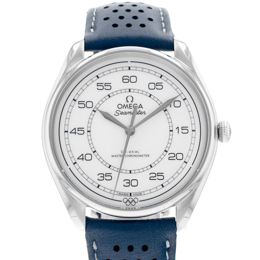 Silver-tone stainless steel case with a blue leather strap. Fixed silver-tone stainless steel bezel. White dial with silver-tone hands and Arabic numeral hour markers. Minute markers around the outer rim. Dial Type: Analog. Omega Calibre 8806 Automatic movement, containing 35 Jewels, bitting at 25200 vph, and has a power reserve of approximately 55 hours. Scratch resistant sapphire crystal. Transparent see through case back. Round case shape, case size: 39 mm. Buckle clasp. Water resistant at 60 meters / 200 feet. Functions: hour, minute, second, co-axial escapement, chronometer, magnetic resistant. Seamaster Series. Luxury watch style. Watch label: Swiss Made. Pre-owned Omega Seamaster Automatic Chronometer White Dial Men's Watch 522.32.40.20.04. GENERAL Year: Circa 2023 Comments: This Omega Seamaster, reference number 522.32.40.20.04, has a manufacturer year of Circa 2023. Box not included, Papers not included . This watch has a 39mm Steel Case with Steel bezel, White Arabic numerals dial and Leather bracelet with Buckle. The Automatic movement has Time Only function. The wrist measures 7.5 inches or 19.05 centimeters. The condition is Very Good The watch listed is in stock and the pictures shown are of the actual watch for sale. All of our watches have been thoroughly Preowned Item Condition: Very Good CASE Case Material: Stainless Steel Case Shape: Round Case Back: Transparent See Through BAND Band Material: Leather Band Type: Strap Band Color: Blue Clasp: Buckle DIAL Dial Color: White Type: Analog Crystal: Scratch Resistant Sapphire Hands: Silver-tone Dial Markers: Arabic Numeral Second Markers: Minute Markers around the outer rim Bezel: Fixed Bezel Color: Silver-tone Bezel Material: Stainless Steel INFORMATION Brand: Omega Series: Seamaster Collection Name: Seamaster Gender: Mens Model: 522.32.40.20.04 Watch Label: Swiss Made Movement: Automatic Engine: Omega Calibre 8806 Power Reserve: 55 hours FEATURES Water Resistance: 60 meters / 200 feet Functions: Hour, Minute, Second, Co-Axial Escapement, Chronometer, Magnetic Resistant Watch Features: Analog, Chronometer, Leather, Stainless Steel ADDITIONAL INFO Watch Style: Luxury Warranty: 1 Year Jomashop Warranty Jomashop Sku: PRE-P-OM101292 Department: Watches Category: Watches