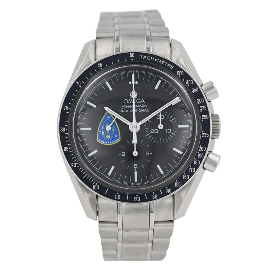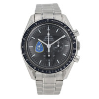 Silver-tone stainless steel case and bracelet. Fixed tachymeter scale black stainless steel bezel. Black dial with silver-tone hands and index hour markers. Minute markers around the outer rim. Dial Type: Analog. Luminescent hands and markers. Chronograph - three sub-dials displaying: 60 second, 30 minute and 12 hour. Hand wind movement. Solid case back. Round case shape, case size: 42 mm. Fold over clasp with a safety release. Functions: chronograph, hour, minute, second. Speedmaster Series. Luxury watch style. Watch label: Swiss Made. Pre-owned Omega Speedmaster Chronograph Hand Wind Black Dial Men's Watch 3597.09. GENERAL Comments: The watch is in near mint condition, with no visible scratches to the naked eye, but may have some tiny scratches under very close-up inspection. The watch comes in its original box with a blank warranty card; the box and that card show imperfections, just as shown in the photos. The automatic movement keeps time within standards. Fits the men's wrist up to 6.5 inches. The watch passed the water pressure test, and we will include the printout of the test results. The serial is present and visibl Preowned Item Condition: Mint CASE Case Material: Stainless Steel Case Shape: Round Case Back: Solid BAND Band Material: Stainless Steel Band Type: Bracelet Band Color: Silver-tone Clasp: Fold Over with Safety Release DIAL Dial Color: Black Type: Analog Hands: Silver-tone Dial Markers: Index Second Markers: Minute Markers around the outer rim Sub Dials: Three - 60 Second, 30 Minute and 12 Hour Luminiscence: Hands and Markers Bezel: Fixed Tachymeter Scale Bezel Color: Black Bezel Material: Stainless Steel INFORMATION Brand: Omega Series: Speedmaster Collection Name: Speedmaster Gender: Mens Model: 3597.09 Watch Label: Swiss Made Movement: Hand Wind FEATURES Functions: Chronograph, Hour, Minute, Second Watch Features: Analog, Stainless Steel, Chronograph ADDITIONAL INFO Watch Style: Luxury Warranty: 1 Year Jomashop Warranty Jomashop Sku: PRE-P-OM104448 Department: Watches Category: Watches
