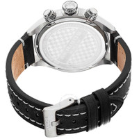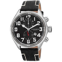 Stainless steel case with a black leather strap. Fixed stainless steel bezel. Black matte dial with luminous silver-tone hands and Arabic numeral hour markers. Minute markers around the outer rim. Dial Type: Analog. Luminescent hands and hour markers. Date display at 4 o'clock position. Chronograph - two sub-dials displaying: 60 second and 30 minute. Quartz movement. Scratch resistant mineral crystal with sapphire coating. Pull / push crown. Screw down case back. Case diameter: 46 mm. Case thickness: 14.5 mm. Round case shape. Band width: 24 mm. Band length: 9 inches. Tang clasp. Water resistant at 50 meters / 165 feet. Functions: chronograph, date, hour, minute, second. Casual watch style. Watch label: Hong Kong. Akribos XXIV Essential Chronograph Black Dial Stainless Steel Men's Watch AK706SSB. INFORMATION Brand: Akribos Xxiv Series: Essential Collection Name: Essential Gender: Mens Model: AK706SSB Watch Label: Hong Kong Movement: Quartz CASE Case Size: 46 mm Case Thickness: 14.5 mm Case Material: Stainless Steel Case Shape: Round Case Back: Screw Down BAND Band Material: Leather Band Type: Strap Band Color: Black Band Length: 9 inches Band Width: 24 mm Clasp: Tang DIAL Dial Color: Black Matte Type: Analog Crystal: Mineral with Sapphire coating Hands: Luminous Silver-tone Dial Markers: Arabic Numeral Second Markers: Minute Markers around the outer rim Sub Dials: Two - 60 Second and 30 Minute Luminiscence: Hands and Hour Markers Bezel: Fixed Bezel Color: Silver-tone Bezel Material: Stainless Steel Crown: Pull / Push FEATURES Water Resistance: 50 meters / 165 feet Calendar: Date display at the 4 o'clock position Functions: Chronograph, Date, Hour, Minute, Second Watch Features: Chronograph, Stainless Steel, Leather, Analog ADDITIONAL INFO Watch Style: Casual Warranty: With Manufacturers Guarantee UPC Code: 848572030632 Jomashop Sku: AK706SSB Department: Watches Category: Watches