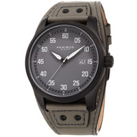 Black composite metal case with a black leather strap. Fixed black composite metal bezel. Grey dial with black leaf-style hands and small Arabic numeral hour markers. Arabic numeral minute markers (at 5 minute intervals). Minute markers around the outer rim. Dial Type: Analog. Luminescent hands and markers. Date display at the 3 o'clock position. Quartz movement. Scratch resistant mineral crystal. Pull / push crown. Solid case back. Round case shape. Case size: 46 mm. Case thickness: 14 mm. Band width: 40 mm. Band length: 8 inches. Buckle clasp. Water resistant at 50 meters / 165 feet. Functions: date, hour, minute, second. Fashion watch style. Akribos XXIV Quartz Grey Dial Men's Watch AK1024GN. INFORMATION Brand: Akribos Xxiv Gender: Mens Model: AK1024GN Movement: Quartz CASE Case Size: 46 mm Case Thickness: 14 mm Case Material: Composite Metal Case Shape: Round Case Back: Solid BAND Band Material: Leather Band Type: Strap Band Color: Black Band Length: 8 inches Band Width: 40 mm Clasp: Tang DIAL Dial Color: Grey Type: Analog Crystal: Scratch Resistant Mineral Hands: Luminous Black Leaf-style Dial Markers: Arabic Numeral Second Markers: Arabic Numeral Minute Markers (at 5 minute intervals). Minute Markers around the outer rim Luminiscence: Hands and Markers Bezel: Fixed Bezel Color: Black Bezel Material: Composite Metal Crown: Pull / Push FEATURES Water Resistance: 50 meters / 165 feet Calendar: Date display at the 3 o'clock position Functions: Date, Hour, Minute, Second Watch Features: Leather, Analog ADDITIONAL INFO Watch Style: Fashion Warranty: With Manufacturers Guarantee UPC Code: 842106113860 Jomashop Sku: AKAK1024GN Department: Watches Category: Watches