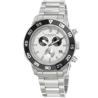 Stainless steel case with a stainless steel bracelet. Uni-directional rotating stainless steel bezel with an inlaid black ring. White matte dial with luminous silver-tone hands and index hour markers. Dial Type: Analog. Luminescent hands and markers. Date display at the 4 o'clock position. Chronograph - two black sub-dials displaying: 60 second and 30 minute. Day of the week sub-dial. Quartz movement. Scratch resistant mineral glass with sapphire coating crystal. Pull / push crown. Screw down case back. Round case shape. Case size: 45 mm. Case thickness: 13 mm. Band width: 21 mm, band length: 8.5 inches. Fold over clasp. Water resistant at 30 meters / 100 feet. Functions: chronograph, hour, minute, second. Additional Info: subdials: three, day, 60 second and 30 minute timers. Casual watch style. Watch label: Chrono Swiss. Akribos XXIV White Matte Men's Watch AK669SSW. INFORMATION Brand: Akribos Xxiv Gender: Mens Model: AK669SSW Watch Label: Chrono Swiss Movement: Quartz CASE Case Size: 45 mm Case Thickness: 13 mm Case Material: Stainless Steel Case Shape: Round Case Back: Screw Down BAND Band Material: Stainless Steel Band Type: Bracelet Band Color: Silver-tone Band Length: 8.5 inches Band Width: 21 mm Clasp: Fold Over DIAL Dial Color: White Matte Type: Analog Crystal: Mineral Glass with Sapphire Coating Hands: Luminous Silver-tone Dial Markers: Index Sub Dials: Two - 60 Second and 30 Minute. Day of the Week Luminiscence: Hands and Markers Bezel: Uni-directional Rotating Bezel Color: Silver-tone Bezel Material: Stainless Steel with an inlaid Black Ring Crown: Pull / Push FEATURES Water Resistance: 30 meters / 100 feet Calendar: Date display at the 4 o'clock position Functions: Chronograph, Hour, Minute, Second Watch Features: Chronograph, Stainless Steel, Analog ADDITIONAL INFO Watch Style: Casual Warranty: With Manufacturers Guarantee UPC Code: 848572028295 Additional Info: Subdials: Three, day, 60 second and 30 minute timers Jomashop Sku: AK669SSW Department: Watches Category: Watches