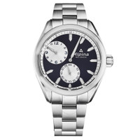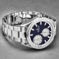 Silver-tone stainless steel case and bracelet. Fixed silver-tone stainless steel bezel. Dark blue dial with silver-tone hands and index hour markers. Minute markers around the outer rim. Dial Type: Analog. Luminescent hands and markers. Two sub-dials displaying: 60 second and 12 hour. Alpina Calibre AL-650 Hand Wind movement, based upon ETA Unitas 6498, containing 17 Jewels, bitting at 18000 vph, and has a power reserve of approximately 42 hours. Scratch resistant sapphire crystal. Screw down crown. Solid case back. Round case shape, case size: 45 mm, case thickness: 12.3 mm. Band width: 22 mm. Water resistant at 100 meters / 330 feet. Functions: hour, minute, second. Alpiner Regulator Series. Watch label: Swiss Made. Alpina Alpiner Regulator Hand Wind Men's Watch AL-650NSS5E6B. INFORMATION Brand: Alpina Series: Alpiner Regulator Collection Name: Alpiner Regulator Gender: Mens Model: AL-650NSS5E6B Watch Label: Swiss Made Movement: Hand Wind Engine: Alpina Calibre AL-650 Power Reserve: 38 hours CASE Case Size: 45 mm Case Thickness: 12.3 mm Case Material: Stainless Steel Case Shape: Round Case Back: Solid BAND Band Material: Stainless Steel Band Type: Bracelet Band Color: Silver-tone Band Width: 22 mm Clasp: Fold Over with Safety Release DIAL Dial Color: Dark Blue Type: Analog Crystal: Scratch Resistant Sapphire Hands: Silver-tone Dial Markers: Index Second Markers: Minute Markers around the outer rim Sub Dials: Two - 60 Second and 12 Hour Luminiscence: Hands and Markers Bezel: Fixed Bezel Color: Silver-tone Bezel Material: Stainless Steel Crown: Screw Down FEATURES Water Resistance: 100 meters / 330 feet Functions: Hour, Minute, Second Watch Features: Stainless Steel, Analog ADDITIONAL INFO Watch Style: Luxury Warranty: 2 Year Jomashop Warranty UPC Code: 7688200334557 Jomashop Sku: AL650NSS5E6B Department: Watches Category: Watches