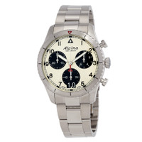 Silver-tone stainless steel case and bracelet. Silver-tone stainless steel bezel. White dial with silver-tone hands and Arabic numeral hour markers. Minute markers around the outer rim. Dial Type: Analog. Luminescent hands and markers. Date display at the 6 o'clock position. Chronograph - three sub-dials displaying: 60 second, 30 minute and 1/10th of a second. Alpina Calibre AL-372 quartz movement. Scratch resistant sapphire crystal. Solid case back. Round case shape, case size: 41 mm, case thickness: 12.75 mm. Water resistant at 100 meters / 330 feet. Functions: chronograph, big date, hour, minute, second. Startimer Series. Sport watch style. Watch label: Swiss Made. Alpina Startimer Chronograph Quartz White Dial Men's Watch AL-372WB4S26B. INFORMATION Brand: Alpina Series: Startimer Collection Name: Startimer Gender: Mens Model: AL-372WB4S26B Watch Label: Swiss Made Movement: Quartz Engine: Alpina Calibre AL-372 CASE Case Size: 41 mm Case Thickness: 12.75 mm Case Material: Stainless Steel Case Shape: Round Case Back: Solid BAND Band Material: Stainless Steel Band Type: Bracelet Band Color: Silver-tone DIAL Dial Color: White Type: Analog Crystal: Scratch Resistant Sapphire Hands: Silver-tone Dial Markers: Arabic Numeral Second Markers: Minute Markers around the outer rim Sub Dials: Three - 60 Second, 30 Minute and 1/10th of a Second Luminiscence: Hands and Markers Bezel Color: Silver-tone Bezel Material: Stainless Steel FEATURES Water Resistance: 100 meters / 330 feet Calendar: Date display at the 6 o'clock position Functions: Chronograph, Big Date, Hour, Minute, Second Watch Features: Chronograph, Stainless Steel, Analog ADDITIONAL INFO Watch Style: Sport Warranty: 2 Year Jomashop Warranty Jomashop Sku: AL372WB4S26B Department: Watches Category: Watches