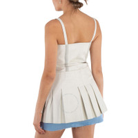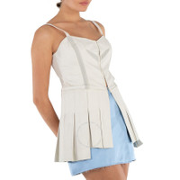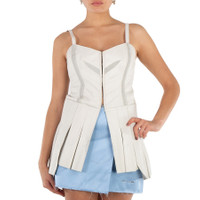 Alyx Ladies Tops. Fashion category: Shirts & Blouses. SKU: AAWSH0172 LE01 WTH0001. Color: White. Alyx Ladies White Leather Corset Top. This leather corset top combines pleated details and a two-tone color scheme for a bold yet sophisticated look. It features a a subtle sweet heart neckline and sleeveless design, fastening with hooks and lacking pockets for a sleek silhouette. Unlined to showcase the leather's smooth texture, it's perfect for pairing with high-waisted bottoms for a standout outfit. 100% Calfskin. GENERAL Color: White INFORMATION Brand: Alyx Gender: Womens Model: AAWSH0172 LE01 WTH0001 DETAILS Category: Tops Apparel Type: Shirts & Blouses ADDITIONAL INFO Jomashop Sku: -AWSH0172LE01WTH0001 Department: Clothing