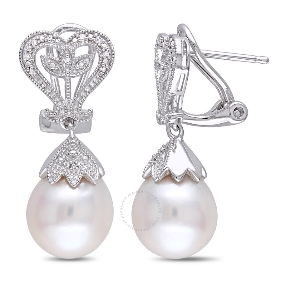 These delightful earrings each feature a 10-10.5 Mm freshwater rice white pearl and ten round white diamonds. This classic pair is set in sterling silver and are secured with omega backs. GENERAL Stone Shape: Drop & Rice Color: White INFORMATION Brand: Amour Gender: Womens Model: JMS009502 DETAILS Earrings: Drop/Dangle Material : Sterling Silver Metal Stamp: 925-Sterling Metal Weight: 4.2 Stone Type: Pearl Stone Color: White Stone Cut: Drop & Rice Total Stones: 22 ADDITIONAL INFO Jomashop Sku: AMR-JMS009502 Department: Jewelry Category: Earrings