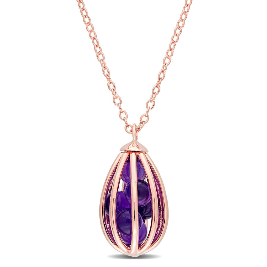 This charming amethyst cage drop necklace is crafted in rose plated sterling silver and features six round, bead-cut, bezel-set amethyst gemstones in a unique shaped cage design. This modern pendant is the perfect addition to any jewelry collection. Coordinate this gorgeous birthstone necklace with any ensemble and instantly add a touch of elegance and sophistication to your look. GENERAL Stone Shape: Round Color: Pink INFORMATION Brand: Amour Gender: Womens Model: JMS010351 DETAILS Necklaces: Pendant Chain Type: Cable Closure Type: Spring Ring Material : Sterling Silver Metal Stamp: 925-Sterling Metal Weight: 1.7 Stone Type: Amethyst Stone Weight: 2.7 Stone Color: Purple Stone Cut: Round Stone Origin: Natural Total Stones: 6 ADDITIONAL INFO Jomashop Sku: AMR-JMS010351 Department: Jewelry Category: Necklaces Choose a Size: 18 Inches