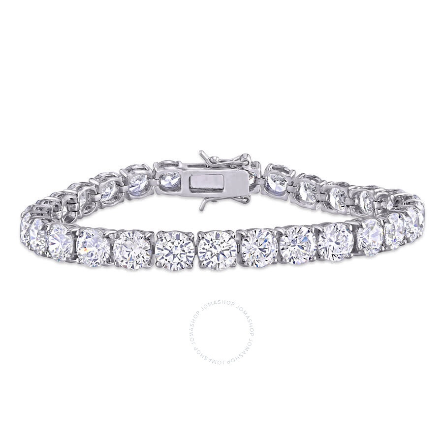 AMOUR 40 CT TGW White Cubic Zirconia Tennis Bracelet In Sterling Silver