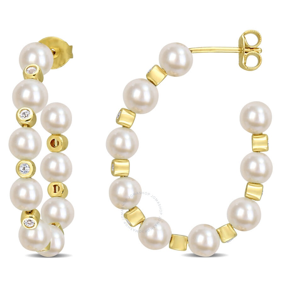 Stand out crowd at the next evening party with these trendy Open Hoop Beaded Earrings. Crafted in luminous yellow gold flash plated sterling silver, these captivating earrings feature 18 cultured freshwater pearls (4.5-5Mm) and 16 round-cut, bezel-set white topaz gemstones (1.5X1.5Mm) placed in between the pearls. Enhanced with a high polished finish, these stylish earrings are secured with butterfly closures. Who said hoops can be boring when you have such unique designs available. GENERAL Stone Shape: Round Color: Yellow INFORMATION Brand: Amour Gender: Womens Model: JMS009557 DETAILS Earrings: Hoop Material : Sterling Silver Metal Stamp: 925-Sterling Metal Weight: 1.76 Stone Type: Pearl Stone Color: White Stone Cut: Round Total Stones: 34 ADDITIONAL INFO Jomashop Sku: AMR-JMS009557 Department: Jewelry Category: Earrings