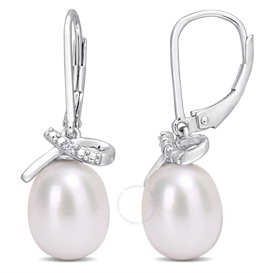 These wonderful pearl dangle earrings are crafted in sterling silver. These stunning drop earrings feature two 7.5-8Mm rice freshwater cultured pearls adorned with two round-cut white diamonds on a bow ribbon design. Enhanced with a high polish finish, these earrings are secured with leverbacks. Coordinate these gorgeous earrings with any ensemble and instantly add a touch of elegance and sophistication to your look. A perfect gift for that special June birthday in your life. GENERAL Stone Shape: Drop & Rice Color: White INFORMATION Brand: Amour Gender: Womens Model: JMS009526 DETAILS Earrings: Fashion Material : Sterling Silver Metal Stamp: 925-Sterling Metal Weight: 1.5 Stone Type: Pearl Stone Color: White Stone Cut: Drop & Rice Total Stones: 4 ADDITIONAL INFO Jomashop Sku: AMR-JMS009526 Department: Jewelry Category: Earrings
