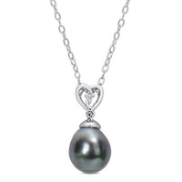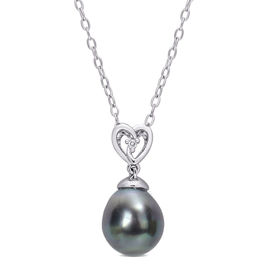 Get a captivating look for the next evening party with this charming Open Heart Drop Pendant with Chain. Mounted in sparkling sterling silver, this elegant pendant showcases a drop-shaped black Tahitian cultured freshwater pearl (8-9mm) and a round-cut, prong-set white topaz gemstone (1.3X1.3Mm) placed above the pearl in an open heart design. Polished to a brilliant shine, this splendid pendant is suspended on an 18-inch round cable chain and secured with a spring ring clasp. This evergreen pendant is sure to make you the upcoming fashion influencer. GENERAL Color: White INFORMATION Brand: Amour Gender: Womens Model: JMS009643 DETAILS Necklaces: Pendant Chain Type: Cable Closure Type: Spring Ring Material : Sterling Silver Metal Stamp: 925-Sterling Stone Type: Pearl Stone Color: Black Total Stones: 2 ADDITIONAL INFO Additional Info: Pearl Shape: Drop Jomashop Sku: AMR-JMS009643 Department: Jewelry Category: Necklaces Choose a Size: 18 Inches