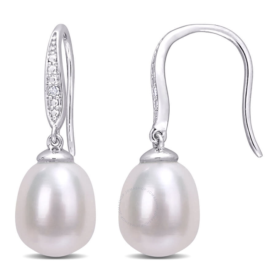 These glamorous pearl hook dangle earrings are crafted in sterling silver and feature two 8.5-9 Mm rice cultured freshwater pearls along with two round-cut, pave-set diamonds to add sparkle to your look. Enhanced with a high polish finish, these marvelous drop earrings are the perfect addition to any jewelry collection. Coordinate these gorgeous birthstone solitaire earrings with any ensemble and instantly add a touch of elegance and sophistication to your look. A stunning gift for that special June birthday in your life. GENERAL Stone Shape: Drop & Rice Color: White INFORMATION Brand: Amour Gender: Womens Model: JMS009530 DETAILS Earrings: Fashion Material : Sterling Silver Metal Stamp: 925-Sterling Metal Weight: 1.8 Stone Type: Pearl Stone Color: White Stone Cut: Drop & Rice Total Stones: 4 ADDITIONAL INFO Jomashop Sku: AMR-JMS009530 Department: Jewelry Category: Earrings