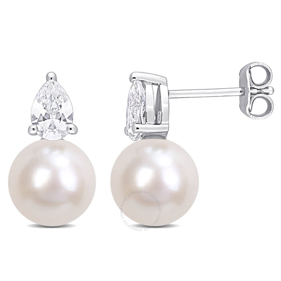 Spread your charm on the Gram with these captivating Solitaire Stud Earrings. Crafted in glistening sterling silver, these classic earrings feature two round-shaped cultured freshwater pearls (8.5-9Mm) and two pear-cut, prong-set created white sapphire gemstones (6x4mm). Polished to a brilliant shine, these exquisite earrings are comfortably secured with butterfly closures. These versatile earrings will compliment a traditional as well as a formal outfit. GENERAL Stone Shape: Round Color: White INFORMATION Brand: Amour Gender: Womens Model: JMS009568 DETAILS Earrings: Stud Material : Sterling Silver Metal Stamp: 925-Sterling Metal Weight: 1 Stone Type: Pearl Stone Color: White Stone Cut: Round Total Stones: 4 ADDITIONAL INFO Jomashop Sku: AMR-JMS009568 Department: Jewelry Category: Earrings