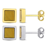 This men's 2-piece set features square stud earrings with a total gem weight of 2 carats, showcasing the rich and earthy tones of tiger's eye. One pair is set in yellow gold, while the other is set in sterling silver, offering versatile styling options. These earrings add a touch of natural elegance and sophistication to any ensemble. GENERAL Color: Yellow INFORMATION Brand: Amour Gender: Mens Model: JMS011454 DETAILS Necklaces: Stud Material : Sterling Silver Metal Stamp: 925-Sterling Metal Weight: 0.52 Stone Type: Other Stone Weight: 1 Stone Color: Yellow Stone Origin: Natural Total Stones: 4 ADDITIONAL INFO Additional Info: Square dou Jomashop Sku: AMR-JMS011454 Department: Jewelry Category: Set