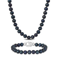 This men's 2-piece set features a necklace and bracelet adorned with 8-8.5mm black cultured freshwater pearls, each secured with sterling silver clasps. The necklace measures 20 inches in length, while the bracelet measures 9 inches.Black cultured freshwater pearls offer a distinctive and sophisticated look, complemented by the classic elegance of sterling silver clasps. This set is designed to add a touch of refined style to formal attire, making it ideal for special occasions or as a statement piece in everyday wear. Total wg 76.5g. GENERAL Stone Shape: Round Color: White INFORMATION Brand: Amour Gender: Mens Model: JMS011467 DETAILS Necklaces: Fashion Closure Type: Lobster Material : Sterling Silver Metal Stamp: 925-Sterling Stone Type: Pearl Stone Color: Black Stone Cut: Round Stone Origin: Natural ADDITIONAL INFO Additional Info: Strand -20in Bracelet 9in Jomashop Sku: AMR-JMS011467 Department: Jewelry Category: Set