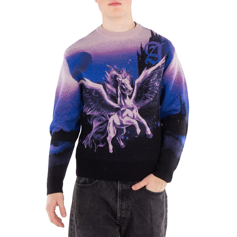 Aries Men's Purple Woolen Jumper Pegasus Print Sweater