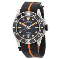 Silver-tone stainless steel case with a black NATO band. Uni-directional rotating black ceramic bezel. Black dial with silver-tone hands and index hour markers. Minute markers around the outer rim. Dial Type: Analog. Luminescent hands and markers. Date display at the 6 o'clock position. Automatic movement. Scratch resistant sapphire crystal. Solid case back. Round case shape, case size: 44 mm. Buckle clasp. Water resistant at 300 meters / 1000 feet. Functions: date, hour, minute, second. Jsh Series. Watch label: Swiss Made. Armand Nicolet JSH Automatic Black Dial Men's Watch A480PGN-NO-BN24480AANO. CASE Case Size: 44 Case Material: Stainless Steel Case Shape: Round Case Back: Solid BAND Band Material: NATO Band Type: Strap Band Color: Black Clasp: Buckle DIAL Dial Color: Black Type: Analog Crystal: Scratch Resistant Sapphire Hands: Silver-tone Dial Markers: Index Second Markers: Minute Markers around the outer rim Luminiscence: Hands and Markers Bezel: Uni-directional Rotating Bezel Color: Black Bezel Material: Ceramic INFORMATION Brand: Armand Nicolet Series: Jsh Collection Name: JSH Gender: Mens Model: A480PGN-NO-BN24480AANO Watch Label: Swiss Made Movement: Automatic FEATURES Water Resistance: 300 meters / 1000 feet Calendar: Date display at the 6 o'clock position Functions: Date, Hour, Minute, Second Watch Features: Stainless Steel, Ceramic, Analog ADDITIONAL INFO Warranty: 2 Year Jomashop Warranty Jomashop Sku: Z-8P4VK Department: Watches