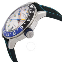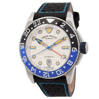 Silver-tone stainless steel case with a black canvas strap. Rotating black and blue ceramic bezel. Silver dial with silver-tone hands and index hour markers. Minute markers around the outer rim. Dial Type: Analog. Luminescent hands and markers. Date display at the 6 o'clock position. Automatic movement. Scratch resistant sapphire crystal. Solid case back. Round case shape, case size: 44 mm. Buckle clasp. Water resistant at 300 meters / 1000 feet. Functions: GMT, hour, minute, second. Jsh Series. Sport watch style. Watch label: Swiss Made. Armand Nicolet JSH Automatic Silver Dial Men's Watch A486RGU-AU-P0668NZ8. CASE Case Size: 44 Case Material: Stainless Steel Case Shape: Round Case Back: Solid BAND Band Material: Canvas Band Type: Strap Band Color: Black Clasp: Buckle DIAL Dial Color: Silver Type: Analog Crystal: Scratch Resistant Sapphire Hands: Silver-tone Dial Markers: Index Second Markers: Minute Markers around the outer rim Luminiscence: Hands and Markers Bezel: Rotating Bezel Color: Black and Blue Bezel Material: Ceramic INFORMATION Brand: Armand Nicolet Series: Jsh Collection Name: JSH Gender: Mens Model: A486RGU-AU-P0668NZ8 Watch Label: Swiss Made Movement: Automatic FEATURES Water Resistance: 300 meters / 1000 feet Calendar: Date display at the 6 o'clock position Functions: GMT, Hour, Minute, Second Watch Features: Analog, GMT, Ceramic, Stainless Steel ADDITIONAL INFO Watch Style: Sport Warranty: 2 Year Jomashop Warranty Jomashop Sku: Z-6PGGH Department: Watches