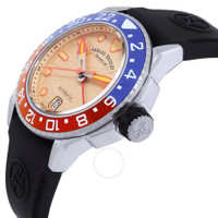 Silver-tone stainless steel case with a black rubber strap. Rotating blue and orange ceramic bezel. Silver-tone hands and index hour markers. Minute markers around the outer rim. Dial Type: Analog. Luminescent hands and markers. Date display at the 6 o'clock position. Sellita Caliber SW330 Automatic movement, containing 25 Jewels, bitting at 28800 vph, and has a power reserve of approximately 42 hours. Scratch resistant sapphire crystal. Solid case back. Round case shape, case size: 41 mm. Deployment clasp. Water resistant at 300 meters / 1000 feet. Functions: date, GMT, second time zone, hour, minute, second. Jsh Series. Watch label: Swiss Made. Armand Nicolet JSH GMT Automatic Men's Watch A487RGN-KO-GG2710N. CASE Case Size: 41 Case Material: Stainless Steel Case Shape: Round Case Back: Solid BAND Band Material: Rubber Band Type: Strap Band Color: Black Clasp: Deployment DIAL Type: Analog Crystal: Scratch Resistant Sapphire Hands: Silver-tone Dial Markers: Index Second Markers: Minute Markers around the outer rim Luminiscence: Hands and Markers Bezel: Rotating Bezel Color: Blue and Orange Bezel Material: Ceramic INFORMATION Brand: Armand Nicolet Series: Jsh Collection Name: JSH Gender: Mens Model: A487RGN-KO-GG2710N Watch Label: Swiss Made Movement: Automatic Engine: Sellita Caliber SW330 Power Reserve: 42 hours FEATURES Water Resistance: 300 meters / 1000 feet Calendar: Date display at the 6 o'clock position Functions: Date, GMT, Second Time Zone, Hour, Minute, Second Watch Features: Analog, GMT, Ceramic, Rubber, Stainless Steel, Time Zone ADDITIONAL INFO Warranty: 2 Year Jomashop Warranty Jomashop Sku: Z-Z5J93 Department: Watches