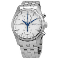 Silver-tone stainless steel case and bracelet. Fixed silver-tone stainless steel bezel. Silver dial with blue hands and index hour markers. Arabic numeral minute markers (at 5 minute intervals). Minute markers, tachymeter markers around the outer rim. Dial Type: Analog. Luminescent hands and markers. Day of the week and date display at the 3 o'clock position. Chronograph - sub-dials displaying: two -30 minute and 12 hour. Sellita Caliber SW500 Automatic movement, containing 25 Jewels, bitting at 28800 vph, and has a power reserve of approximately 44 hours. Scratch resistant sapphire crystal. Transparent case back. Round case shape, case size: 43 mm, case thickness: 15 mm. Fold over clasp with a push button release. Water resistant at 100 meters / 330 feet. Functions: chronograph, date, day, hour, minute, small second. Mh2 Series. Dress watch style. Watch label: Swiss Made. Armand Nicolet MH2 Chronograph Automatic Silver Dial Men's Watch A647A-AG-BMA22640A. GENERAL Box Type: Original Box CASE Case Diameter: 43 mm Case Thickness: 15 mm Case Material: Stainless Steel Case Shape: Round Case Back: Transparent BAND Band Material: Stainless Steel Band Type: Bracelet Band Color: Silver-tone Clasp: Fold Over with Push Button Release DIAL Dial Color: Silver Type: Analog Crystal: Scratch Resistant Sapphire Hands: Blue Dial Markers: Index Second Markers: Arabic Numeral Minute Markers (at 5 minute intervals). Minute Markers, Tachymeter Markers around the outer rim Sub Dials: Two -30 Minute and 12 Hour Luminiscence: Hands and Markers Bezel: Fixed Bezel Color: Silver-tone Bezel Material: Stainless Steel INFORMATION Brand: Armand Nicolet Series: Mh2 Collection Name: MH2 Gender: Mens Model: A647A-AG-BMA22640A Watch Label: Swiss Made Movement: Automatic Engine: Sellita Caliber SW500 Power Reserve: 44 hours FEATURES Water Resistance: 100 meters / 330 feet Calendar: Day of the Week and Date display at the 3 o'clock position Functions: Chronograph, Date, Day, Hour, Minute, Small Second Watch Features: Analog, Stainless Steel, Chronograph ADDITIONAL INFO Watch Style: Dress Warranty: 2 Year Jomashop Warranty Jomashop Sku: Z-HY4EC Department: Watches
