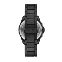 Black stainless steel case and bracelet. Black stainless steel bezel. Black dial with gold-tone hands and index hour markers. Minute markers around the outer rim. Dial Type: Analog. Date display between 4 and 5 o'clock position. Three sub-dials displaying: day, date and 1/10th of a second. Quartz movement. Scratch resistant mineral crystal. Solid case back. Round case shape, case size: 44 mm, case thickness: 13 mm. Band width: 22 mm. Fold over clasp with a safety release. Water resistant at 100 meters / 330 feet. Functions: chronograph, date, hour, minute, second. Spencer Series. Dress watch style. Watch label: Japan Movt. Armani Exchange Spencer Chronograph Quartz Black Dial Men's Watch AX1963. GENERAL Box Type: Original Box CASE Case Diameter: 44 Case Thickness: 13 mm Case Material: Stainless Steel Case Shape: Round Case Back: Solid BAND Band Material: Stainless Steel Band Type: Bracelet Band Color: Black Band Width: 22 mm Clasp: Fold Over with Safety Release DIAL Dial Color: Black Type: Analog Crystal: Scratch Resistant Mineral Hands: Gold-tone Dial Markers: Index Second Markers: Minute Markers around the outer rim Sub Dials: Three - Day, Date and 1/10th of a Second Bezel Color: Black Bezel Material: Stainless Steel INFORMATION Brand: Armani Exchange Series: Spencer Collection Name: Spencer Gender: Mens Model: AX1963 Watch Label: Japan Movt Movement: Quartz FEATURES Water Resistance: 100 meters / 330 feet Calendar: Date display between 4 and 5 o'clock position Functions: Chronograph, Date, Hour, Minute, Second Watch Features: Analog, Gold, Stainless Steel, Chronograph ADDITIONAL INFO Watch Style: Dress Jomashop Sku: AX1963 Department: Watches
