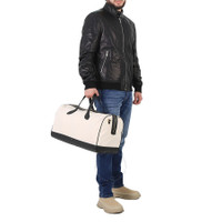 Bally Men's Duffle Bag. SKU: MAT01F CV043 I182O. Barcode: 7617659976384. Color: Natural/Black/Oro. Size: 51 x 28 x 24 cm. Bally 36 Hours Spiro Bar Weekender Duffle Bag. The Bally duffle bag features a a two-way zip closure, gold-tone hardware, a spacious interior with two slip pockets an one zip pocket, a printed logo, a removable/adjustable shoulder strap, dual top carry handles. GENERAL Color: Natural/Black/Oro INFORMATION Brand: Bally Gender: Mens Model: MAT01F CV043 I182O DETAILS Material: Fabric, Leather Occasion: Travel Closure: Zip-Up DIMENSIONS Size: Extra-Large ADDITIONAL INFO UPC Code: 7617659976384 Jomashop Sku: Z-5G4SC Department: Bags Category: Duffle Bag