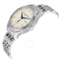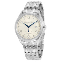 Stainless steel case with a stainless steel bracelet. Fixed stainless steel bezel. Silver dial with blue hands and alternating Arabic numeral and index hour markers. Minute markers around the outer rim. Dial Type: Analog. Date display at the 3 o'clock position. Small seconds sub-dial above the 6 o'clock position. Sellita caliber SW260-1 automatic movement, based upon Sellita SW200-1, containing 31 Jewels, bitting at 28800 vph, and has a power reserve of approximately 38 hours. Scratch resistant sapphire crystal. Pull / push crown. Transparent case back. Round case shape. Case size: 41 mm. Case thickness: 11.5 mm. Band width: 22.9 mm. Band length: 9 inches. Fold over clasp with a push button release. Water resistant at 50 meters / 165 feet. Functions: date, hour, minute, second. Clifton Series. Dress watch style. Watch label: Swiss Made. Item Variations: MOA10099, M0A10099, 10099. Baume and Mercier Clifton Automatic Silver Dial Men's Watch 10099. GENERAL Color: Blue / Silver CASE Case Size: 41 Case Thickness: 11.5 mm Case Material: Stainless Steel Case Shape: Round Case Back: Transparent BAND Band Material: Stainless Steel Band Type: Bracelet Band Color: Silver-tone Band Length: 9 inches Band Width: 22.9 mm Clasp: Fold Over with Push Button Release DIAL Dial Color: Silver Type: Analog Crystal: Scratch Resistant Sapphire Hands: Blue Dial Markers: Alternating Arabic Numeral and Index Second Markers: Minute Markers around the outer rim Sub Dials: Small Second above the 6 o'clock position Bezel: Fixed Bezel Color: Silver-tone Bezel Material: Stainless Steel Crown: Pull / Push INFORMATION Brand: Baume Et Mercier Series: Clifton Collection Name: Clifton Gender: Mens Model: A10099 Watch Label: Swiss Made Movement: Automatic Engine: Sellita Caliber SW260-1 Power Reserve: 38 hours FEATURES Water Resistance: 50 meters / 165 feet Calendar: Date display at the 3 o'clock position Functions: Date, Hour, Minute, Second Watch Features: Stainless Steel, Analog ADDITIONAL INFO Watch Style: Dress Warranty: 2 Year Jomashop Warranty UPC Code: 7613268002988 Jomashop Sku: BMMOA10099 Item Variation: MOA10099, M0A10099, 10099 Department: Watches Category: Watches