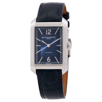 Silver-tone stainless steel case with a blue alligator band. Fixed silver-tone stainless steel bezel. Blue dial with silver-tone hands and Arabic numeral hour markers. Minute markers around the outer rim. Dial Type: Analog. Automatic movement. Scratch resistant sapphire crystal. Rectangle case shape, case size: 43 mm. Functions: hour, minute, second. Hampton Series. Casual watch style. Watch label: Swiss Made. Baume et Mercier Hampton Automatic Blue Dial Men's Watch M0A10732. GENERAL Box Type: Original Box CASE Case Diameter: 43 mm Case Material: Stainless Steel Case Shape: Rectangle BAND Band Material: Alligator Band Type: Strap Band Color: Blue DIAL Dial Color: Blue Type: Analog Crystal: Scratch Resistant Sapphire Hands: Silver-tone Dial Markers: Arabic Numeral Second Markers: Minute Markers around the outer rim Bezel: Fixed Bezel Color: Silver-tone Bezel Material: Stainless Steel INFORMATION Brand: Baume Et Mercier Series: Hampton Collection Name: Hampton Gender: Mens Model: M0A10732 Watch Label: Swiss Made Movement: Automatic FEATURES Functions: Hour, Minute, Second Watch Features: Alligator Leather, Analog, Stainless Steel ADDITIONAL INFO Watch Style: Casual UPC Code: 7613375906537 Jomashop Sku: BMM0A10732 Department: Watches Category: Watches
