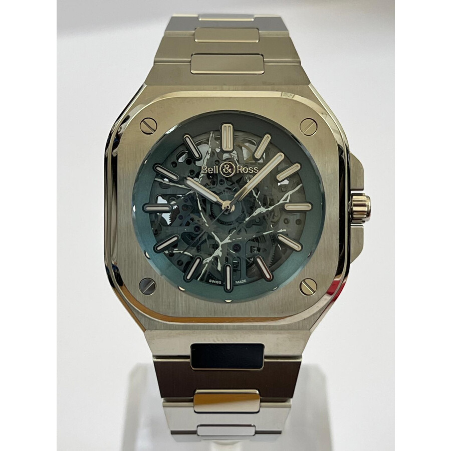 Silver-tone stainless steel case and bracelet. Fixed silver-tone stainless steel bezel. Blue dial with silver-tone hands and index hour markers. Dial Type: Analog. Luminescent hands and markers. Automatic movement. Transparent see through case back. Cushion case shape, case size: 40 mm. Fold over clasp with a safety release. Functions: hour, minute, second. Br-05 Series. Casual watch style. Watch label: Swiss Made. Bell and Ross Br-05 Automatic Blue Dial Men's Watch BR05A-AB-SKST/SST. GENERAL Box Type: Original Box CASE Case Diameter: 40 mm Case Material: Stainless Steel Case Shape: Cushion Case Back: Transparent See Through BAND Band Material: Stainless Steel Band Type: Bracelet Band Color: Silver-tone Clasp: Fold Over with Safety Release DIAL Dial Color: Blue Type: Analog Hands: Silver-tone Dial Markers: Index Luminiscence: Hands and Markers Bezel: Fixed Bezel Color: Silver-tone Bezel Material: Stainless Steel INFORMATION Brand: Bell And Ross Series: Br-05 Collection Name: Br-05 Gender: Mens Model: BR05A-AB-SKST/SST Watch Label: Swiss Made Movement: Automatic FEATURES Functions: Hour, Minute, Second Watch Features: Stainless Steel, Analog ADDITIONAL INFO Watch Style: Casual Jomashop Sku: BLRBR05A-AB-SKST-SST Department: Watches