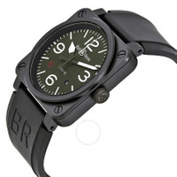 Black matte ceramic case with a black rubber strap. Fixed black ceramic bezel. Olive dial with luminous hands and index hour markers. Arabic numerals mark the 3, 6, 9 and 12 o'clock positions. minute markers around the outer rim. Dial Type: Analog. Luminescent hands and markers. Date display between the 4 and 5 o'clock positions. Bell and Ross Calibre BR-CAL.302 Automatic movement, based upon Sellita SW300-1, containing 25 Jewels, bitting at 28800 vph, and has a power reserve of approximately 38 hours. Scratch resistant sapphire crystal. Pull / push crown. Solid case back. Square case shape, case size: 42 mm, case thickness: 9.8 mm. Tang clasp. Water resistant at 100 meters / 330 feet. Functions: date, hour, minute, second. Military Type Series. Luxury watch style. Watch label: Swiss Made. Item Variations: BR0392 MIL, BR0392.MIL, BR0392MIL. Bell and Ross Military Type Automatic Olive Dial Men's Watch BR0392-MIL. GENERAL Box Type: Original Box CASE Case Size: 42 Case Thickness: 9.8 mm Case Material: Matte Ceramic Case Shape: Square Case Back: Solid BAND Band Material: Rubber Band Type: Strap Band Color: Black Clasp: Tang DIAL Dial Color: Olive Type: Analog Crystal: Scratch Resistant Sapphire Hands: Luminous Dial Markers: Index Second Markers: Arabic Numerals mark the 3, 6, 9 and 12 o'clock positions. Minute Markers around the outer rim Luminiscence: Hands and Markers Bezel: Fixed Bezel Color: Black Bezel Material: Ceramic Crown: Pull / Push INFORMATION Brand: Bell And Ross Series: Military Type Collection Name: Military Type Gender: Mens Model: BR0392-MIL Watch Label: Swiss Made Movement: Automatic Engine: Bell and Ross Calibre BR-CAL.302 Power Reserve: 39 Hour FEATURES Water Resistance: 100 meters / 330 feet Calendar: Date display between the 4 and 5 o'clock positions Functions: Date, Hour, Minute, Second Watch Features: Analog, Ceramic, Rubber ADDITIONAL INFO Watch Style: Luxury Warranty: 2 Year Jomashop Warranty UPC Code: 3700728820931 Jomashop Sku: BLRBR0392-MIL Item Variation: BR0392 MIL, BR0392.MIL, BR0392MIL Department: Watches Category: Watches
