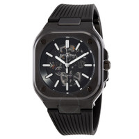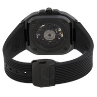 Black ceramic case with a black rubber strap. Fixed black ceramic bezel. Transparent dial with luminous black hands and index hour markers. Dial Type: Analog. Luminescent hands and markers. Automatic movement with a 54-hour power reserve. Scratch resistant sapphire crystal. Screw down crown. Transparent see through case back. Cushion case shape, case size: 41 mm. Folding clasp. Water resistant at 100 meters / 330 feet. Urban Series. Sport watch style. Watch label: Swiss Made. Bell and Ross Urban Automatic Men's Watch BR05A-BL-SK-CE/SRB. CASE Case Size: 41 Case Material: Ceramic Case Shape: Cushion Case Back: Transparent See Through BAND Band Material: Rubber Band Type: Strap Band Color: Black Clasp: Folding DIAL Dial Color: Transparent Type: Analog Crystal: Scratch Resistant Sapphire Hands: Luminous Black Dial Markers: Index Luminiscence: Hands and Markers Bezel: Fixed Bezel Color: Black Bezel Material: Ceramic Crown: Screw Down INFORMATION Brand: Bell And Ross Series: Urban Collection Name: Urban Gender: Mens Model: BR05A-BL-SK-CE/SRB Watch Label: Swiss Made Movement: Automatic Power Reserve: 54 hours FEATURES Water Resistance: 100 meters / 330 feet Watch Features: Rubber, Ceramic, Analog ADDITIONAL INFO Watch Style: Sport Jomashop Sku: BLRBR05ABLSKCESRB Department: Watches Category: Watches