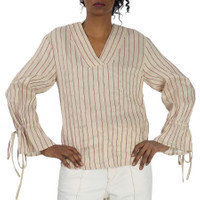 Benjamin Benmoyal Ladies Beige Stiped Linen V Collar Shirt