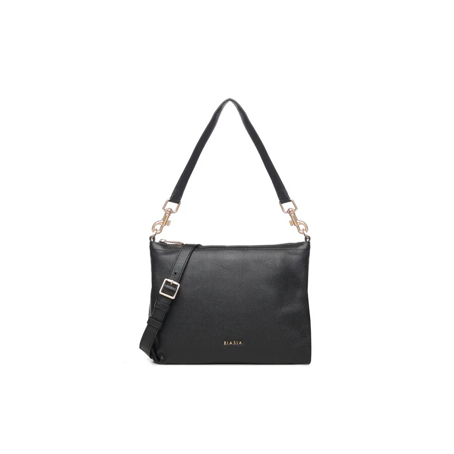 Biasia Ladies Shoulder Bag. SKU: BIBP9FA01NERO. Color: Black. Biasia Logo Shoulder Bag. Made of leather - Zip closure - Metal lettering logo - Adjustable and removable shoulder strap - Dimensions: 28 x 20 x 7 cm - Color: Black. GENERAL Color: Black INFORMATION Brand: Biasia Gender: Womens Model: BIBP9FA01NERO ADDITIONAL INFO UPC Code: 8054942854025 Jomashop Sku: Z-LQ3GC Department: Bags Category: Shoulder Bag