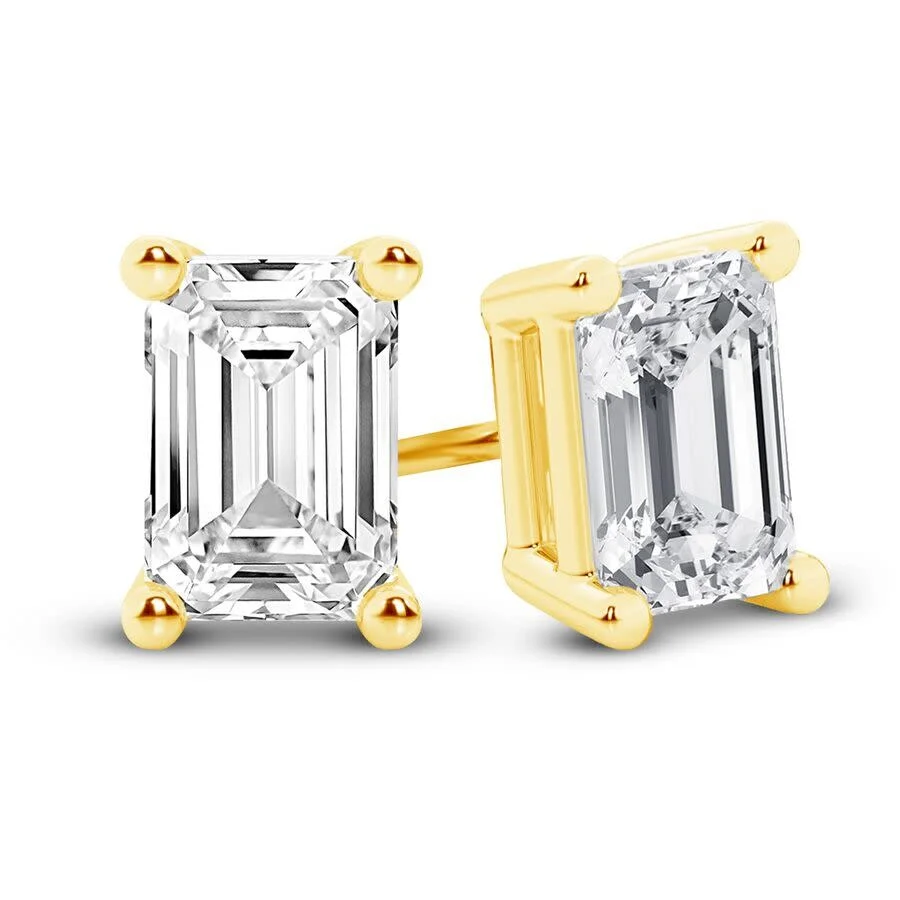 EVERLASTING SPARKLE: Featuring 1 1/2 carat total weight emerald cut sustainably created lab grown diamonds in brilliant cut, EF-VS (1) color clarity, these studs radiate clean, luminous sparkle. Precision-cut and IGI certified, they bring effortless elegance to any day or occasion. Brilliant Diamond Ladies Earrings. Earrings series. SKU: LG-STUDEC150-GY60. Color: Yellow. Metal Type: Yellow Gold. Metal Stamp: 14k. Metal Weight: 1g. Gem stone type: Diamond. Stone weight: 1.5ct. Number of stones: 2. Stone clarity: VS1. Stone shape: Emerald. Stone color: E-F. Earrings style: Stud. Brilliant Diamond 14K Yellow Gold IGI Certified 1.50 Carat Emerald Cut Lab Grown Diamond Stud Earrings for Women, VS Clarity, E-F Color. GENERAL Stone Shape: Emerald Color: Yellow Collection Name: Earrings INFORMATION Brand: Brilliant Diamond Series: Earrings Gender: Womens Model: LG-STUDEC150-GY60 DETAILS Earring Style: Stud Ring Style: Fashion Material : Yellow Gold Metal Stamp: 14K Metal Weight: 1 Stone Type: Diamond Stone Weight: 1.5 Stone Color: E-F Stone Cut: Emerald Stone Clarity: VS1 Stone Origin: Lab Grown Total Stones: 2 ADDITIONAL INFO Jomashop Sku: Y-A5KYK Department: Jewelry Category: Earrings