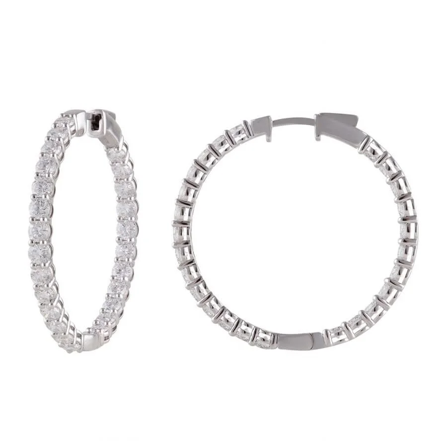 Statement hoops featuring diamonds inside and out for continuous sparkle from every angle. Crafted in 14K white gold with a sleek, high-end finish, these earrings are designed to elevate any look. Packaged in a luxury gift box. Brilliant Diamond Ladies Earrings. Lab Grown Earrings series. SKU: LGD-JOE3755-GW4. Color: White. Metal Type: White Gold. Metal Stamp: 14k. Metal Weight: 11.9g. Gem stone type: Diamond. Number of stones: 50. Stone clarity: SI1. Stone shape: Round. Stone color: G. Earrings style: Hoop. Brilliant Diamond 5 Carat Round Diamond Inside Out Hoop Earrings Set in 14K White Gold, G Color, SI Clarity, Gift Box Included. GENERAL Stone Shape: Round Color: White Collection Name: Lab Grown Earrings INFORMATION Brand: Brilliant Diamond Series: Lab Grown Earrings Gender: Womens Model: LGD-JOE3755-GW4 DETAILS Earring Style: Hoop Ring Style: Fashion Material : White Gold Metal Stamp: 14K Metal Weight: 11.9 Stone Type: Diamond Stone Color: G Stone Cut: Round Stone Clarity: SI1 Stone Origin: Lab Grown Total Stones: 50 ADDITIONAL INFO Jomashop Sku: Y-A5R3N Department: Jewelry Category: Earrings
