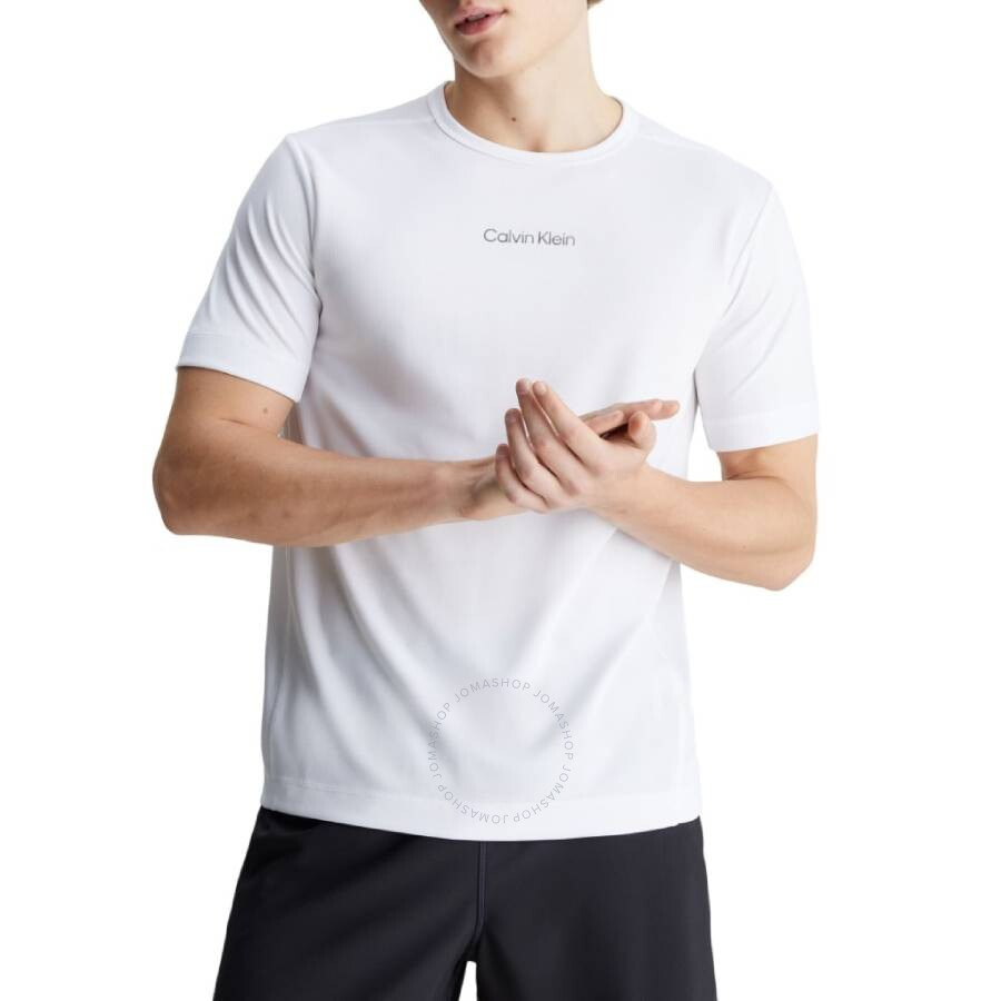 Calvin Klein Men's Tops. Fashion category: T-Shirts & Henleys. SKU: 4MS4K159-540. Color: White. Calvin Klein CK Sport Short-Sleeve Gym T-Shirt. This T-shirt is crafted from a breathable recycled blend mesh with a double-knit interlock fabric, offering both comfort and sustainability. Designed in a regular fit, it features a classic crew neckline and short sleeves for everyday wear. The look is completed with a Calvin Klein rubberised logo on the chest, adding a modern, branded touch. 55% recycled polyester, 45% polyester. GENERAL Brand Type: Designer Color: Brilliant White INFORMATION Brand: Calvin Klein Gender: Mens Model: 4MS4K159-540 DETAILS Category: Tops Apparel Type: T-Shirts & Henleys Material: Polyester ADDITIONAL INFO Jomashop Sku: -4MS4K159540 Department: Clothing