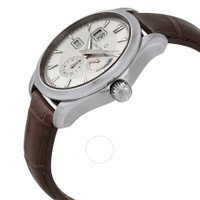 Silver-tone stainless steel case with a brown alligator leather strap. Fixed silver-tone stainless steel bezel. Silver dial with silver-tone dauphine-style shape hands and index hour markers. Minute markers around the outer rim. Dial Type: Analog. Date display at the 9 o'clock position. Two- 60 seconds, power reserve subdials. Carl F. Bucherer Calibre CFB A1011 Automatic movement, containing 33 Jewels, bitting at 21600 vph, and has a power reserve of approximately 55 hours. Scratch resistant sapphire crystal. Pull / push crown. Skeleton transparent exhibition see through case back. Round case shape, case size: 42.5 mm, case thickness: 12.54 mm. Buckle clasp. Water resistant at 30 meters / 100 feet. Functions: big date, day, hour, minute, small second, power reserve indicator. Manero Series. Luxury watch style. Watch label: Swiss Made. Item Variations: 166.275.9. Carl F. Bucherer Manero Automatic Power Reserve Men's Watch 00.10912.08.13.01. GENERAL Box Type: Original Box CASE Case Size: 42 Case Thickness: 12.54 mm Case Color: Silver-Tone Case Material: Stainless Steel Case Shape: Round Case Back: Skeleton Transparent Exhibition See Through BAND Band Material: Alligator Leather Band Type: Strap Band Color: Brown Clasp: Buckle DIAL Dial Color: Silver Type: Analog Crystal: Scratch Resistant Sapphire Hands: Silver-tone Dauphine-style shape Dial Markers: Index Second Markers: Minute Markers around the outer rim Sub Dials: Two - Small Second and Power Reserve Indicator Bezel: Fixed Bezel Color: Silver-tone Bezel Material: Stainless Steel Crown: Pull / Push INFORMATION Brand: Carl F. Bucherer Series: Manero Collection Name: Manero Gender: Mens Model: 00.10912.08.13.01 Watch Label: Swiss Made Movement: Automatic Engine: Carl F. Bucherer Calibre CFB A1011 Power Reserve: 55 hours FEATURES Water Resistance: 30 meters / 100 feet Calendar: Date display at the 9 o'clock position Functions: Big Date, Day, Hour, Minute, Small Second, Power Reserve Indicator Watch Features: Alligator Leather, Analog, Power Reserve Indicator, Leather, Stainless Steel ADDITIONAL INFO Watch Style: Luxury Warranty: 2 Year Jomashop Warranty Jomashop Sku: CFB0010912081301 Item Variation: 166.275.9 Department: Watches Category: Watches