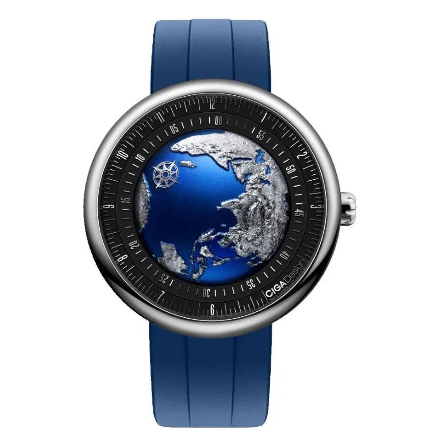 Silver-tone titianium case with a blue rubber strap. Fixed silver-tone titianium bezel. Blue dial with Arabic numeral hour markers. Dial Type: Analog. Luminescent markers. Ciga Design Calibre CD-04 automatic movement with a 40-hour power reserve. Scratch resistant sapphire crystal. Transparent see through case back. Round case shape, case size: 46 mm, case thickness: 15 mm. Band width: 22 mm. Butterfly clasp. Water resistant at 30 meters / 100 feet. Functions: hour, minute. Blue Planet II Series. Ciga Design Blue Planet II Automatic Blue Dial Men's Watch U033-TU02-W6U. GENERAL Box Type: Original Box CASE Case Diameter: 46 mm Case Thickness: 15 mm Case Material: Titianium Case Shape: Round Case Back: Transparent See Through BAND Band Material: Rubber Band Type: Strap Band Color: Blue Band Width: 22 mm Clasp: Butterfly DIAL Dial Color: Blue Type: Analog Crystal: Scratch Resistant Sapphire Dial Markers: Arabic Numeral Luminiscence: Markers Bezel: Fixed Bezel Color: Silver-tone Bezel Material: Titianium INFORMATION Brand: Ciga Design Series: Blue Planet Ii Collection Name: Blue Planet II Gender: Mens Model: U033-TU02-W6U Movement: Automatic Engine: Ciga Design Calibre CD-04 Power Reserve: 40 hours FEATURES Water Resistance: 30 meters / 100 feet Functions: Hour, Minute Watch Features: Rubber, Analog ADDITIONAL INFO UPC Code: 6971311245234 Jomashop Sku: Z-JP7UC Department: Watches